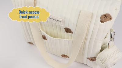 The bag's sturdy design ensures it can withstand the wear and tear of daily use, making it a reliable accessory for busy parents.