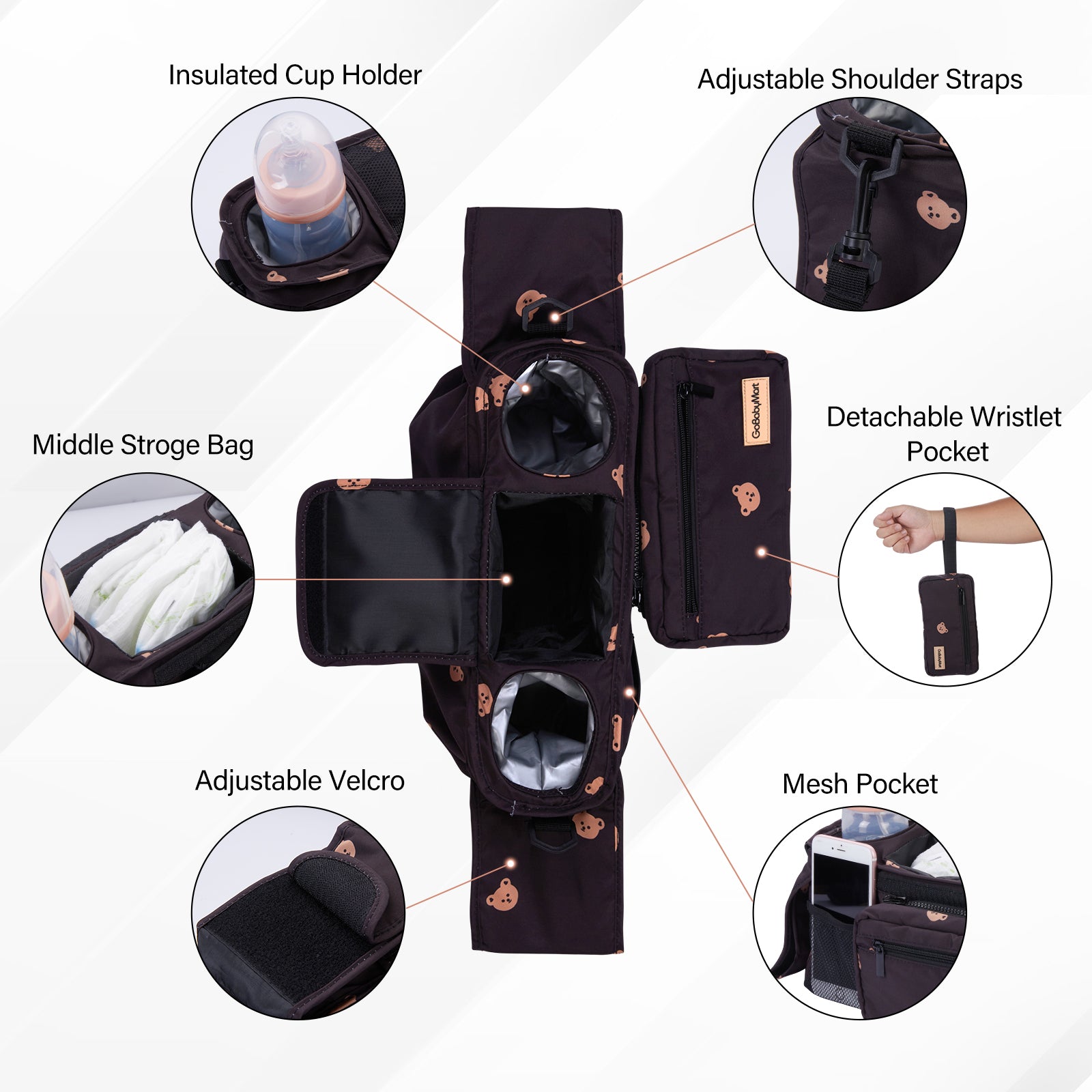 GoBabyMart Universal Stroller Organizer with Insulated Cup Holder & Detachable Bag